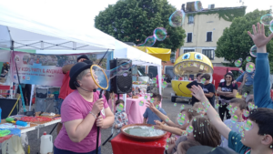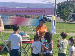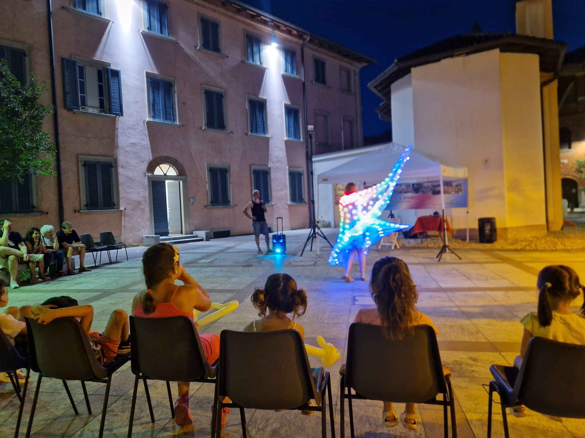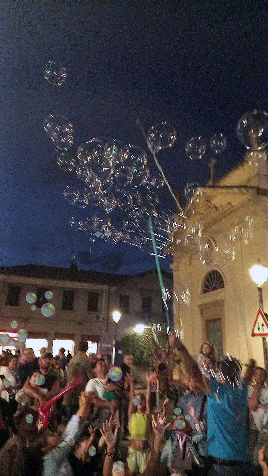 in una calda serata estiva di luglio abbiamo animato la piazza mercato coinvolgendo bambini e adulti nei nostri spettacoli ormai conosciuti di bolle e balli sfrenati